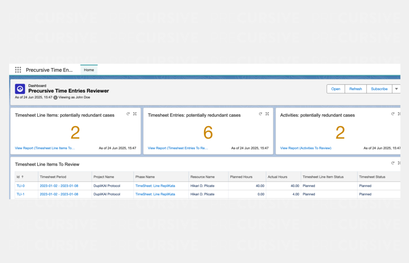 In the past, some customers may have experienced multiple Timesheet Entries for the same workday due to system behaviours in earlier versions of Precursive. With the release of Connect 1.25 / PSX 1.90.10, we’ve improved how Timesheet data is handled to prevent duplicates moving forward.